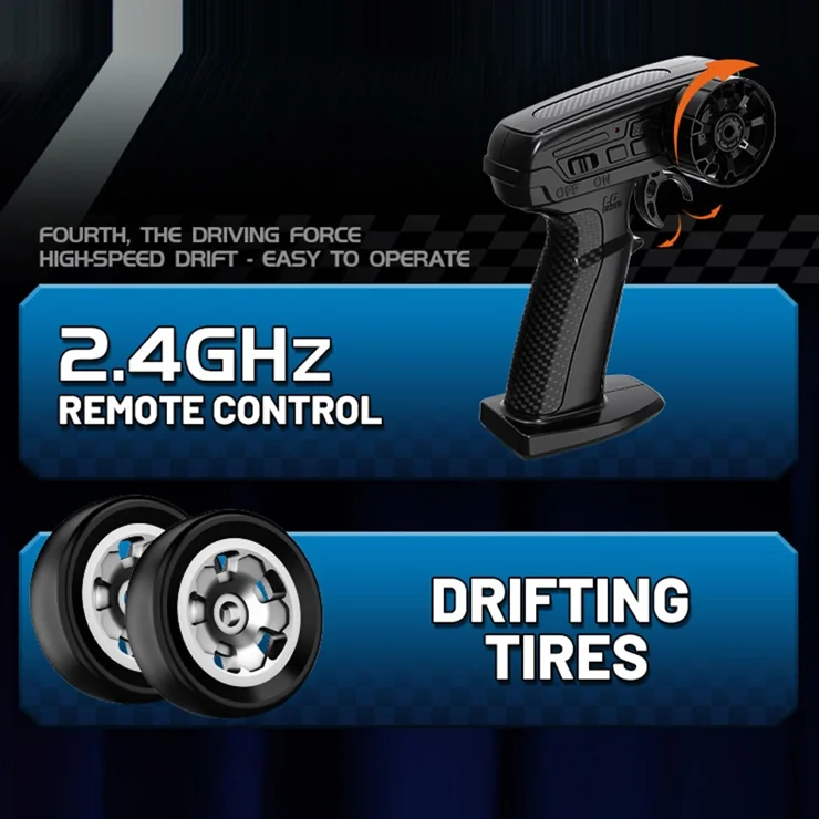 این ماشین کنترلی مجهز به سیستم چهار چرخ محرک (4WD) هست که باعث میشه کنترل فوقالعادهای روی مسیر داشته باشی. فرمانپذیری دقیق و واکنش سریع به دستورات کنترل باعث میشه بتونی به راحتی دریفتهای نرم و حرفهای انجام بدی و حس رانندگی واقعی رو تجربه کنی.