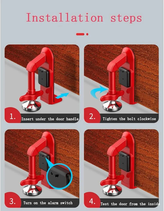 با استفاده از این قفل درب قابل حمل دیگه لازم نیست نگران شکسته شدن در هنگام خواب باشید.