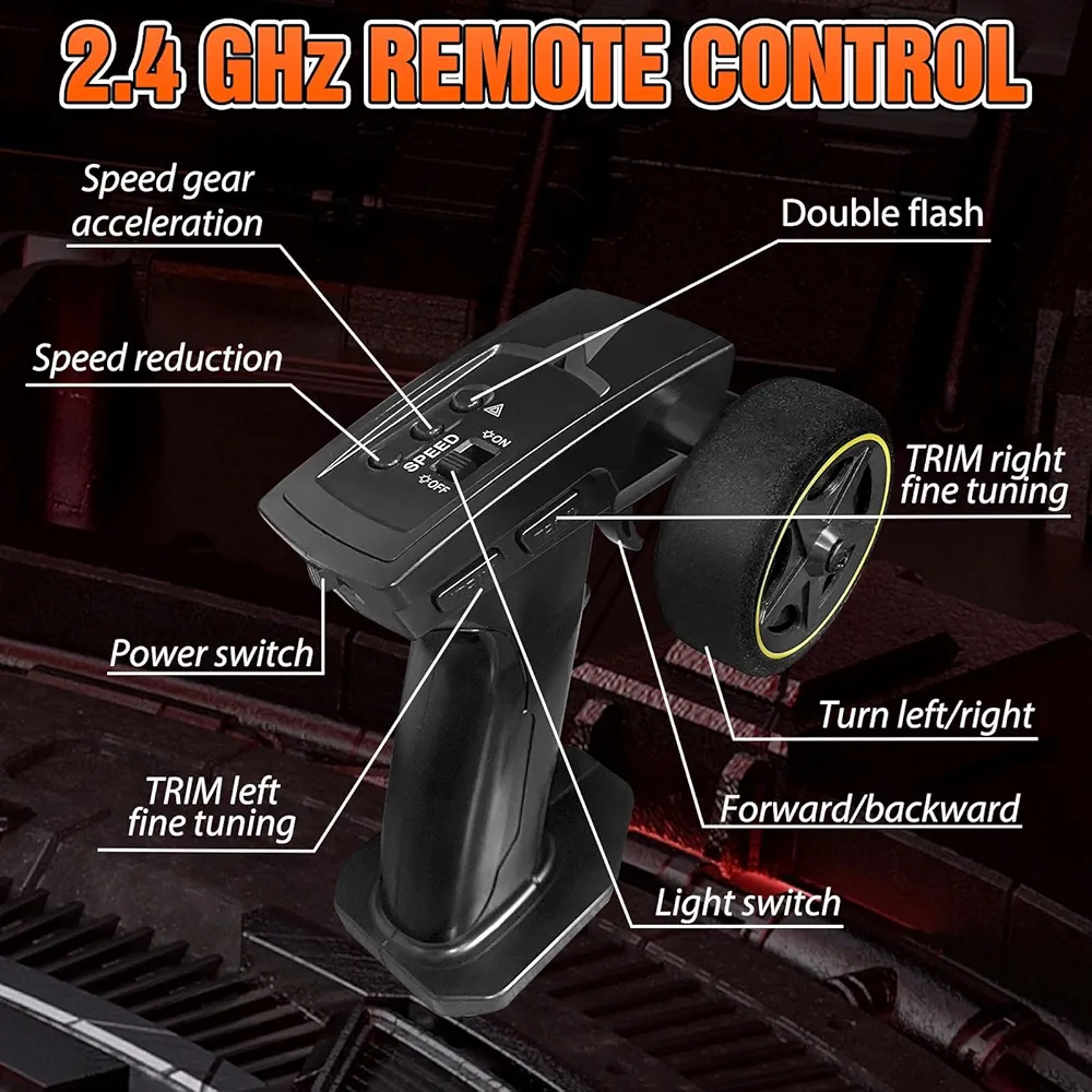 با دسته کنترل 2.4gh که داره انتقال سیگنال پایدار تر و بدونتداخل رو تضمین میکنه و به شما این امکان رو میده که تا فاصله ۵۰ متری اونو خیلی راحت کنترلی کنید🎮👍