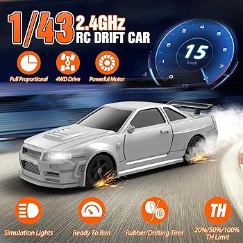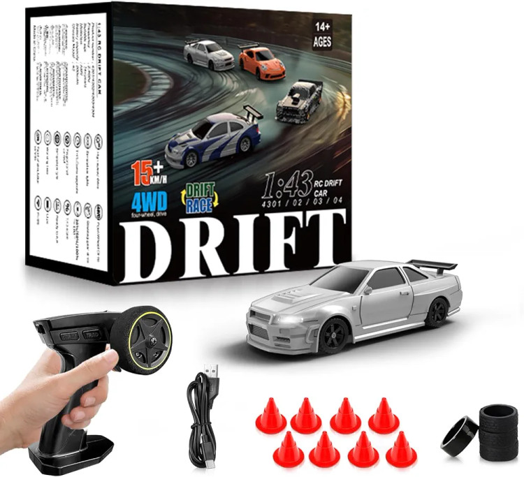 ماشین کنترلی دریفت مینی طرح Nissan gtr r34 خاکستری